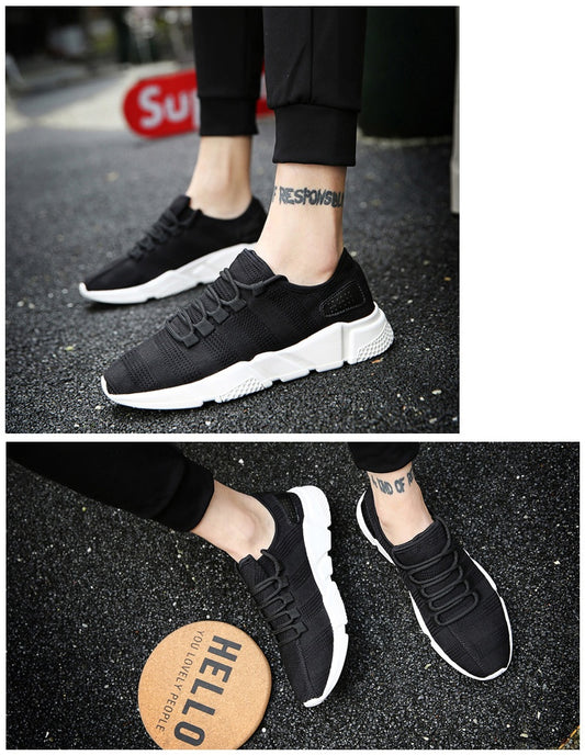 Black Knit Athletic Sneakers Mens Shoes Casual Running Drawstring