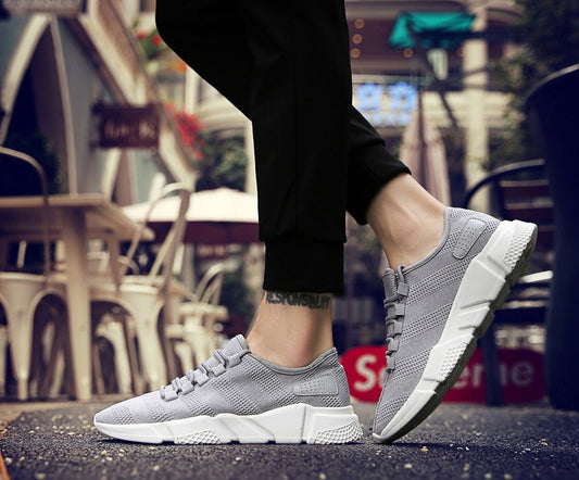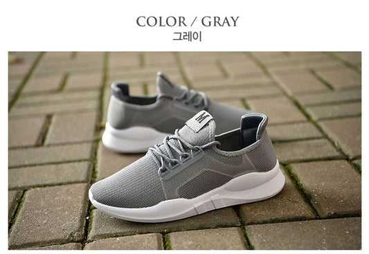 Gray Knit Athletic Sneakers Mens Shoes Casual Running Drawstring