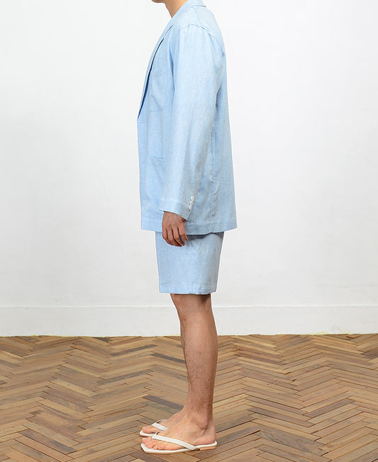 Blue Herringbone Linen Jackets For Mens Blazers Summer Korean Suits