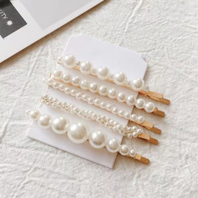 5pcs/Lot Big Small Pearl Beads Hair Clips Hairpins For Women Girls