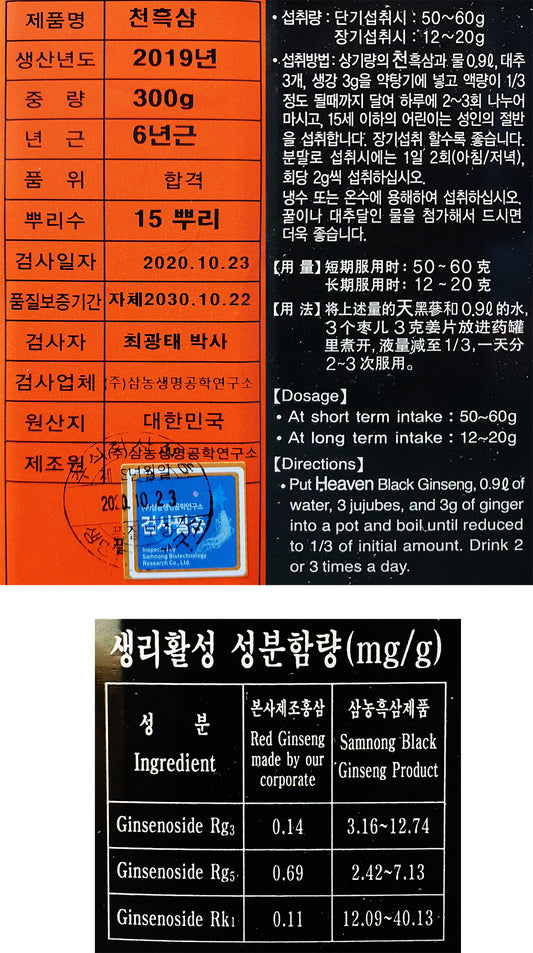 Korean Black Ginseng 15 Roots 6 Years Health Supplements Foods 300g