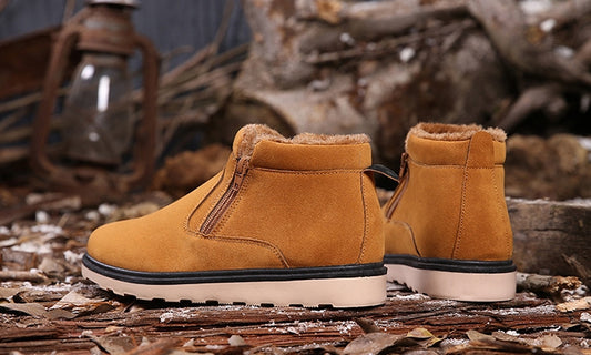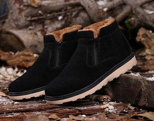 Black Side Zipper Fur Lining Suede Boots