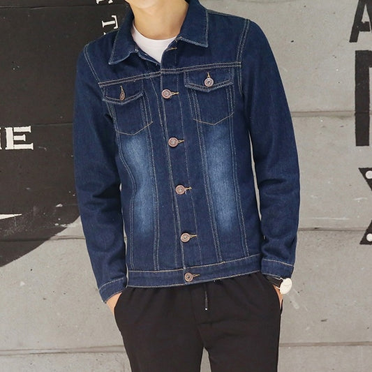 Dark Blue Denim Jackets Mens Vintage Washed Outfits Kpop Fashion