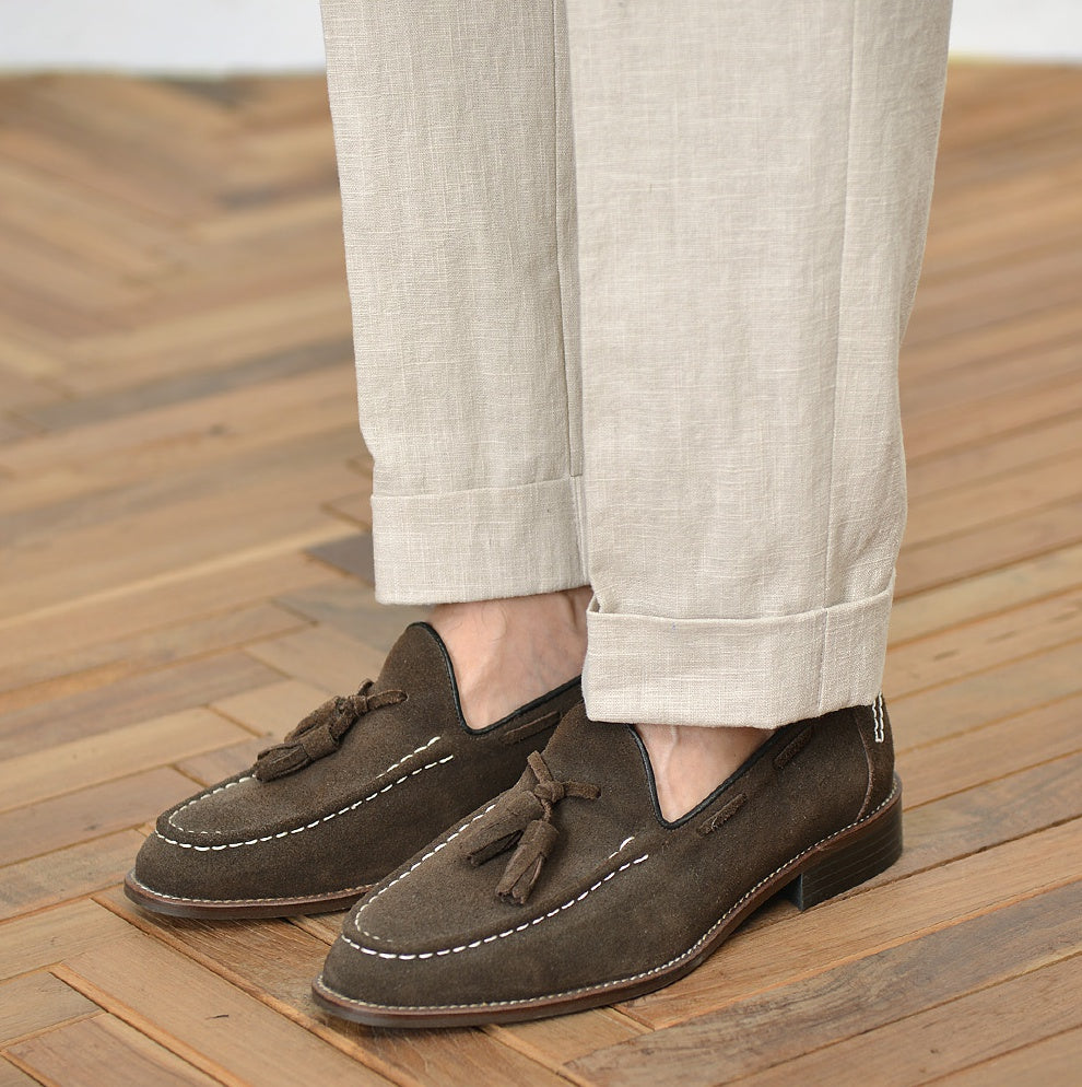 Brand new relaxed fitted linen wear, dress trousers for men. 2 tucked pants, Korean fashion pants for dating, party, wedding. Cuffed hem pants for stylish guys.