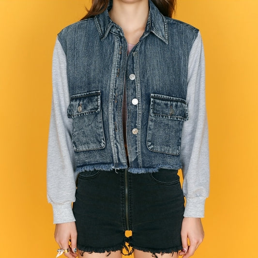 Blue Hybrid Denim Sweats Cotton Sleeved Jackets