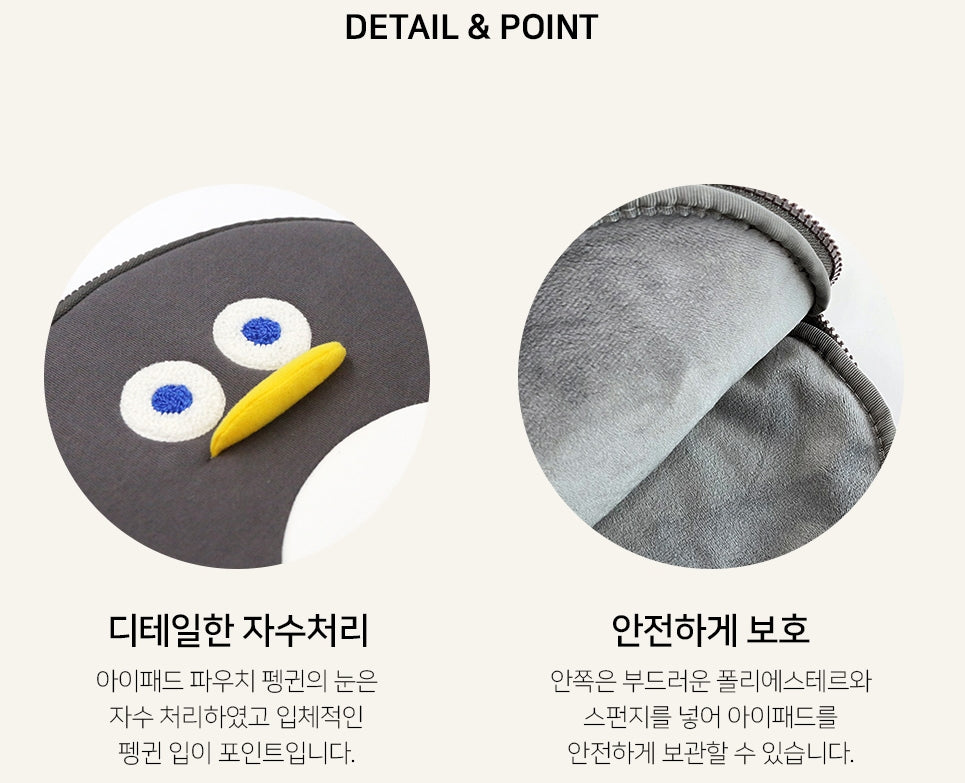 Penguin so cute character shaped ipad pouch for sale. Durable and protective for ipad 11 inch, soft touch along with polyester padding inside for protection.
