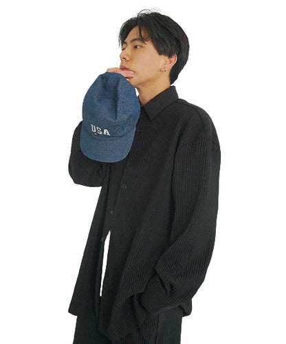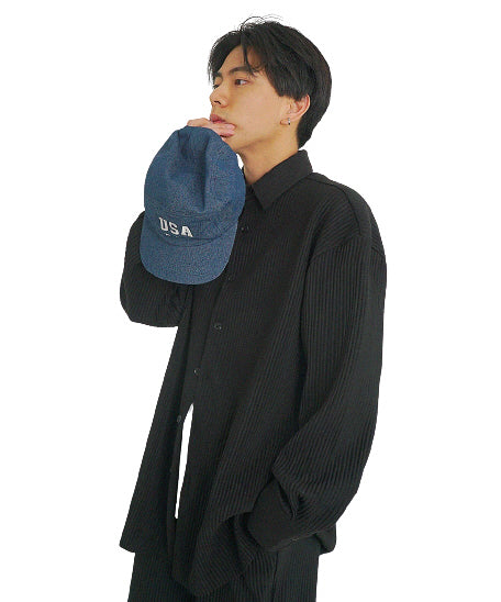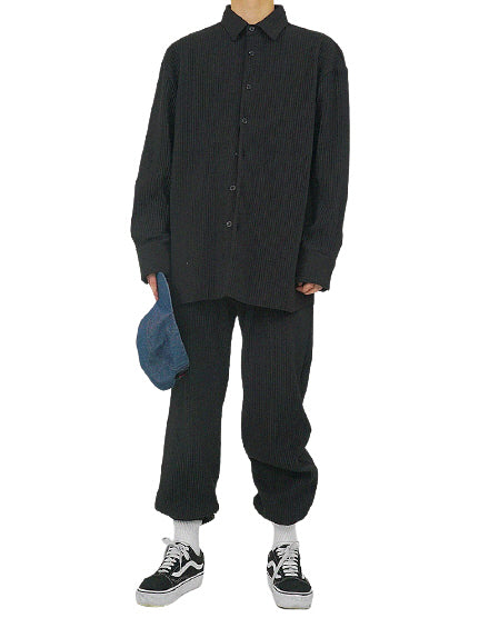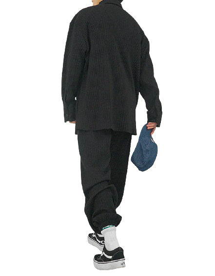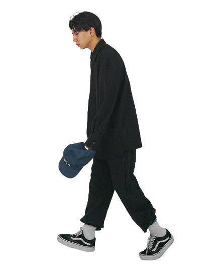 Comfortable loose fit button-front shirts for men, made of wool blend fabric, so soft. Pleated designed shirts for stylish guy. Korean style fashionable shirts.