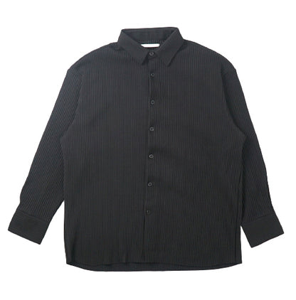 Black Pleated Casual Shirts Mens Button Front Wool Blend Tops Korean