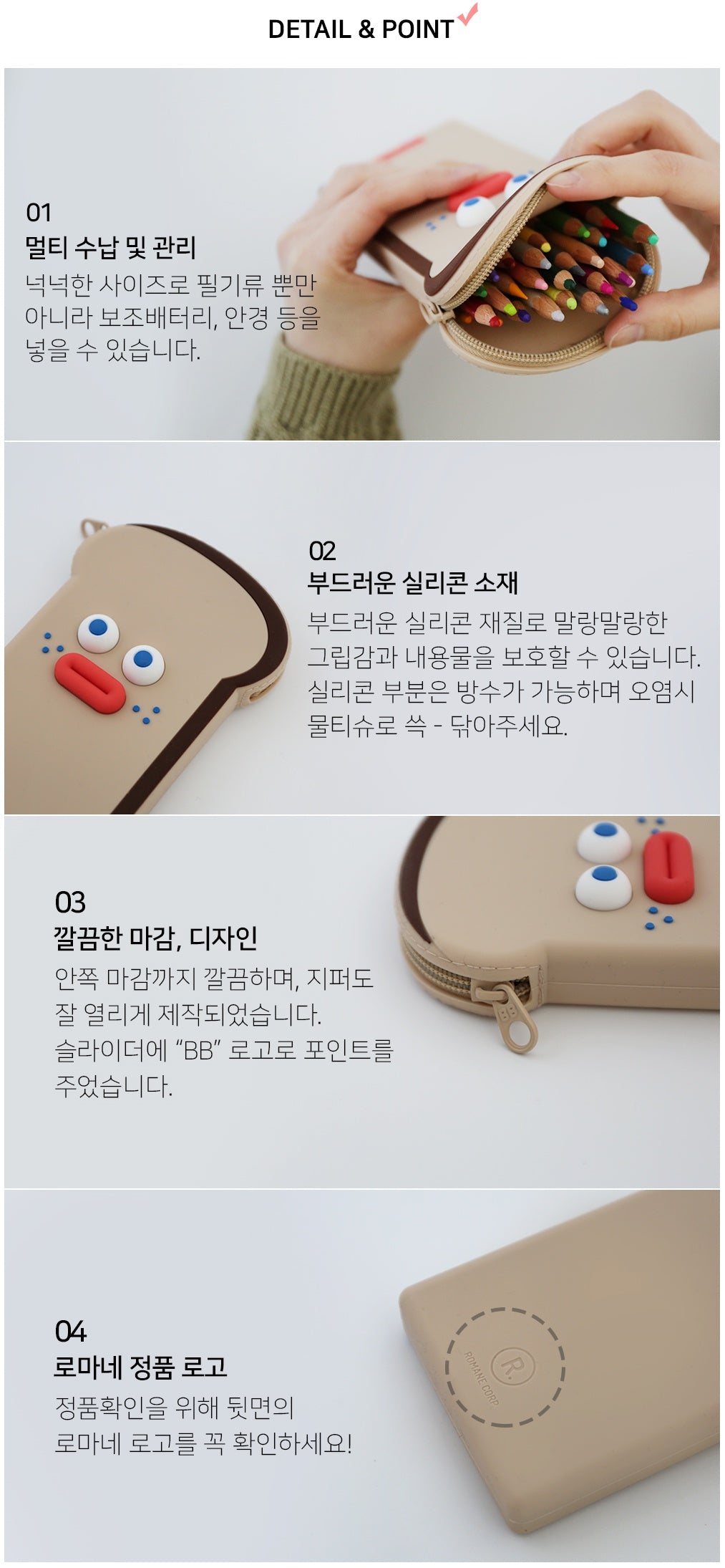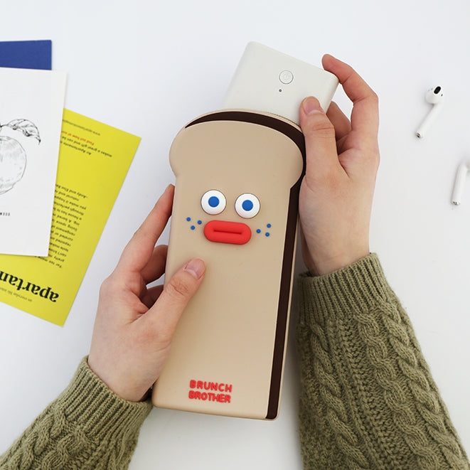 Beige Black BrunchBrother Silicon Toast Pencil Cases Stationery Cute Cotton Zipper