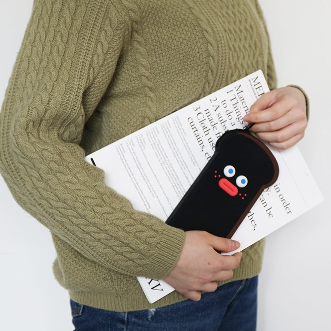 Cute stationery Pencil Cases with toast shaped. Back zipper closure, silicon fabric. Beige and black color pencil cases, use for school, work. Good for gifts.
