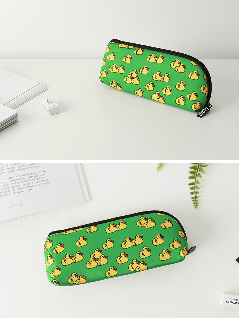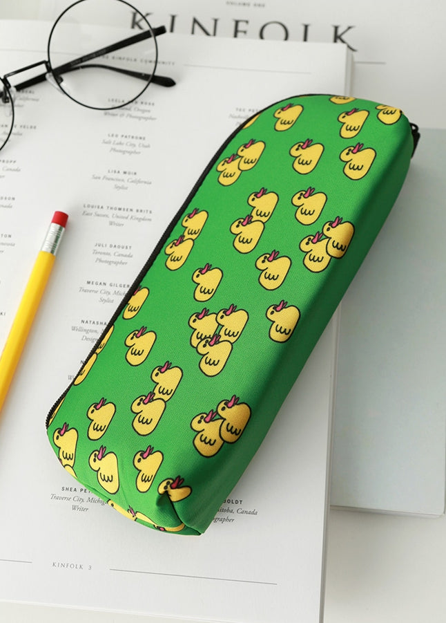 Green Yellow Duck Graphic Pencil Cases Stationery Zipper School 19cm Office Cosmetics Pouches Artists Designer Prints Gifts Bags Purses Students Girls Erasers