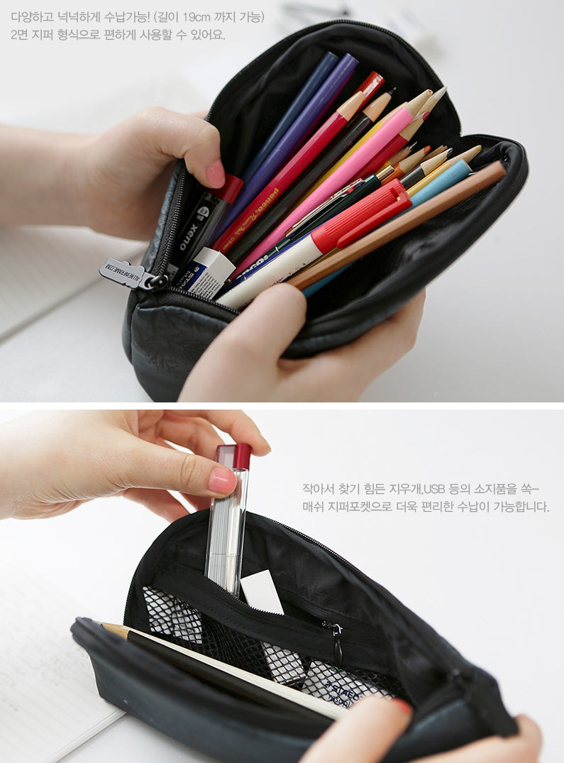 There is a mesh pocket on the inside, so you can organize your stationery and small items without falling apart.