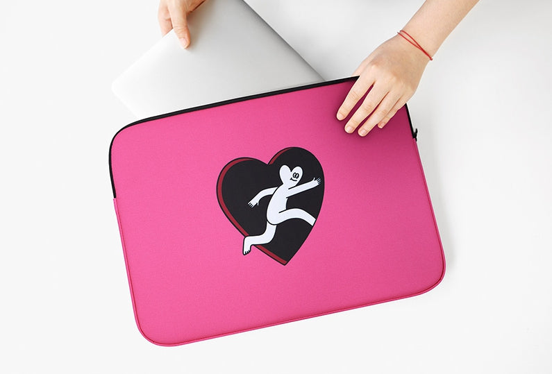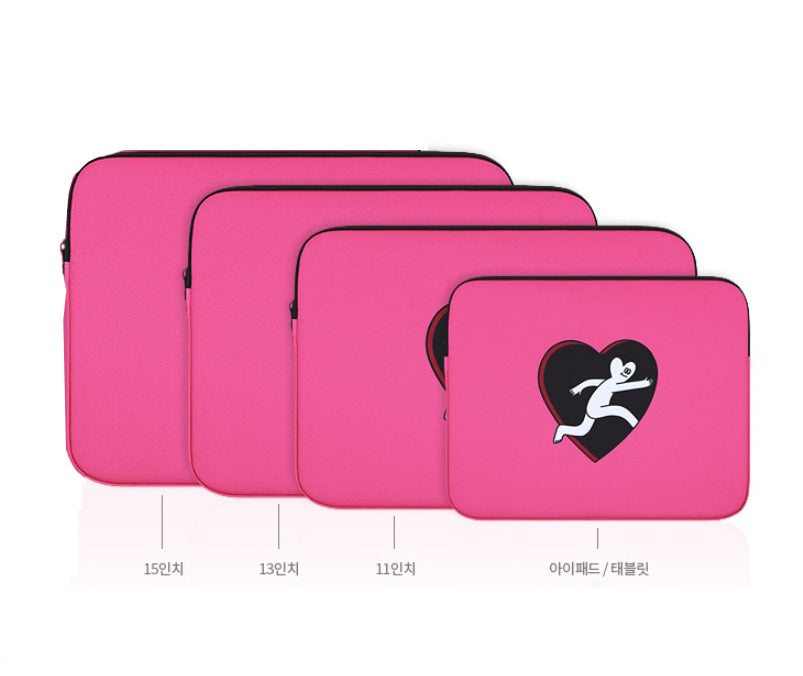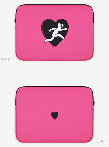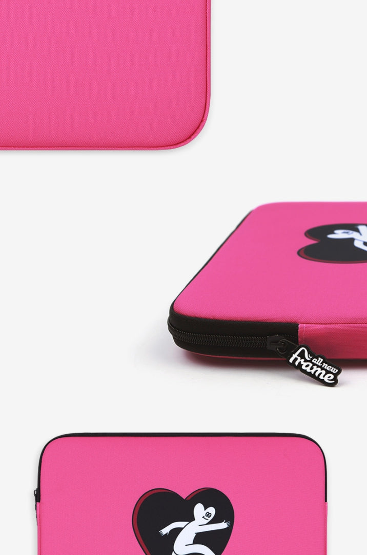 Pink Black Heart Graphic Laptop Sleeves iPad 11" 13" 15" inch Cases Protective Covers Handbags Square Pouches Designer Artist Prints Cute Lightweight School Collage Office Zipper Fashion Unique Gifts