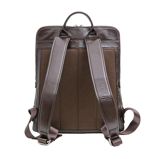 Brown Classic Genuine Cowhide Leather Laptop Mens Backpacks Square New