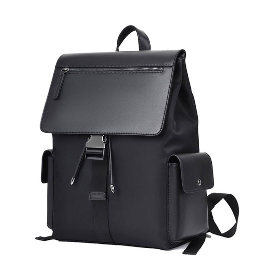 Black Faux Leather Combi Laptop Backpacks For Men Travel Luggage Strap