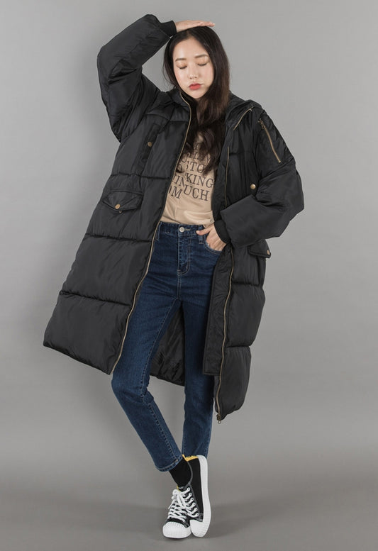 Black Hooded Long Puffers Coats