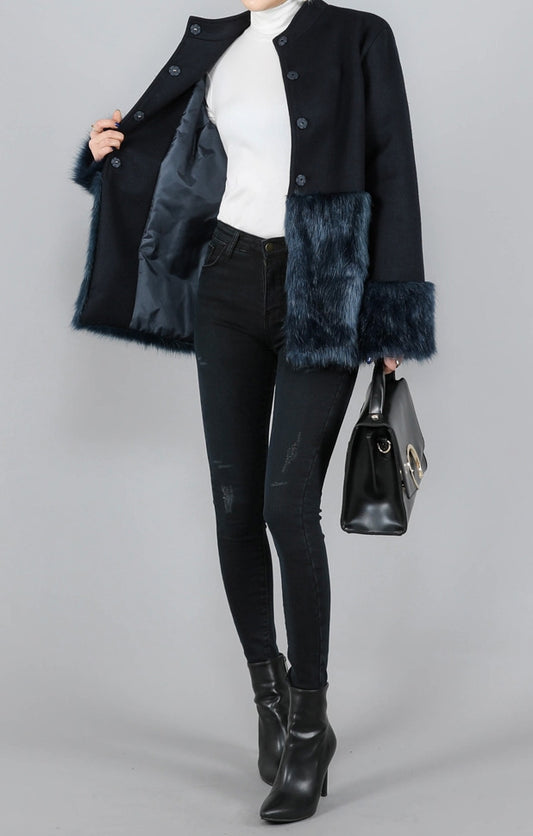 Navy Blue Luxury Faux Fur Wool Jackets