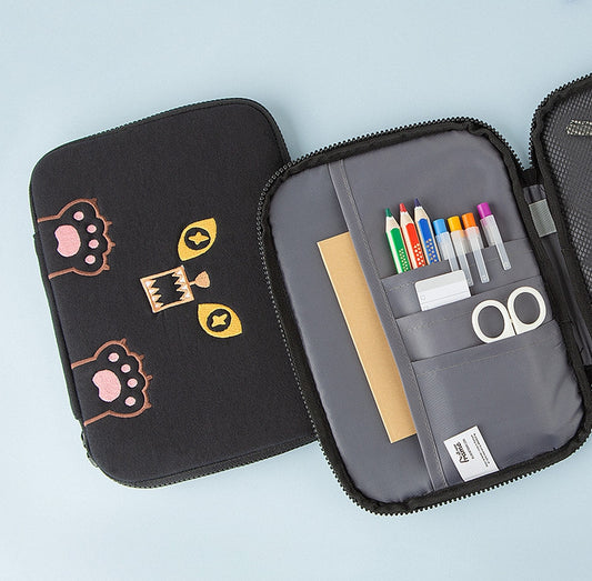 Cute Characters Square Book Pouches Purses Handbags Cosmetics Coin Wallets Writing Instrument Inner Pocket Embroidery Black Red Beige Womens Gifts