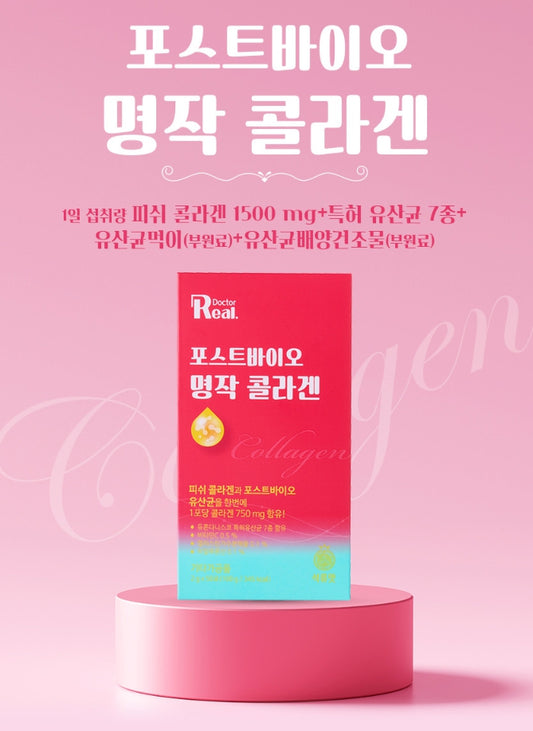 Real Doctor Post Bio Collagen 50 Sachets Health Supplements Hyaluronic Acid Low Molecular Fish collagen Powder Pomegranate Flavor Elastin