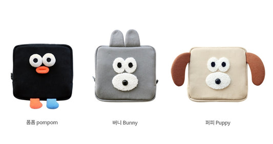 Cute Characters Square Pouches Purses Handbags Cosmetics Coin Charger Wallets Black Gray Beige