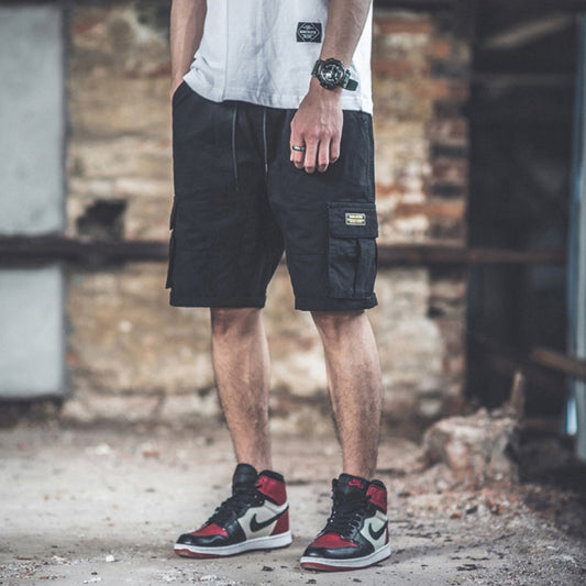 Black Waistband Mens Cargo Shorts Casual Streetwear Solid Pocket