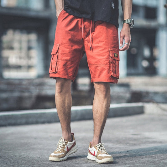 Orange Waistband Mens Cargo Shorts Casual Streetwear Stylish Guys
