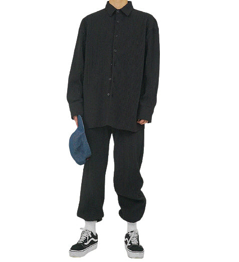 Charcoal Pleated Jogger Pants Men Trouser Casual Wool Blend Kpop Style