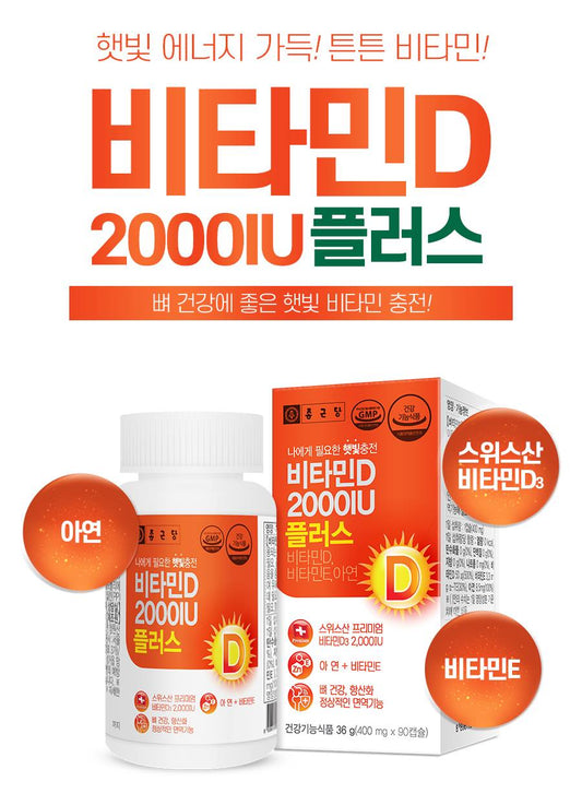 JONG GEUN DANG Vitamin D 2000iu Plus 400mg x 90capsule Zinc Vitamin E