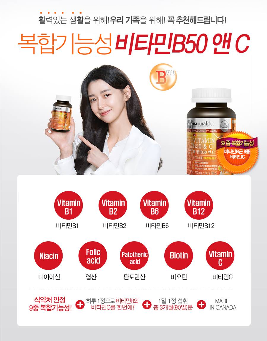 NATURAL PLUS Vitamin B50 & C 1,100 mg x 90 tablets Niacin Folic acid