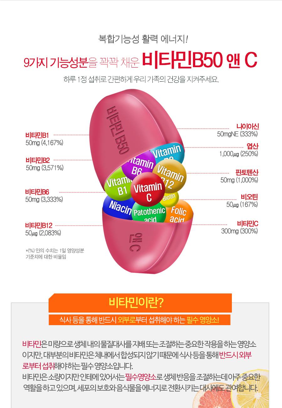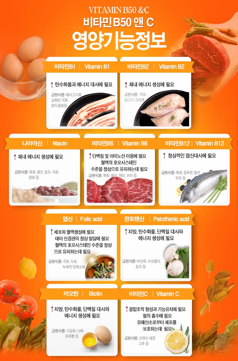 Main ingredients: Vitamin B1, Vitamin B2, Niacin, Vitamin B6, Vitamin B12, Folic acid, Pantothenic acid, Biotin, Vitamin C