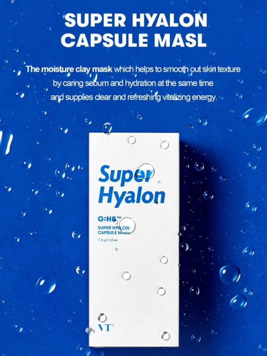 VT Super Hyalon Capsule Masks 10 Packs Dry Skin Moisture Hydrating Soothing Care Panthenol Blue Mellow Controlling excess sebums