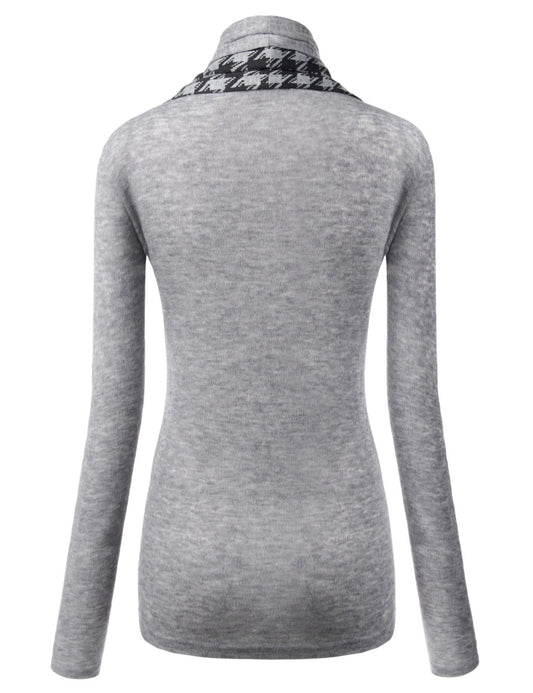 Heather Gray Houndstooth Shawl Collar Knitted Open Cardigans