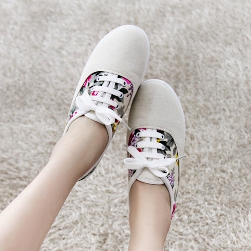 Ivory Floral Canvas Sneakers Cute Lovely Low-Tops Shoes