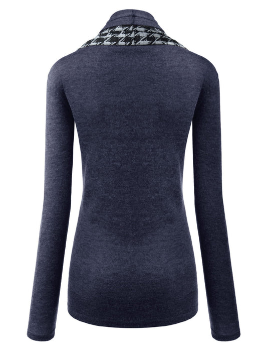 Navy Blue Houndstooth Shawl Collar Knitted Open Cardigans