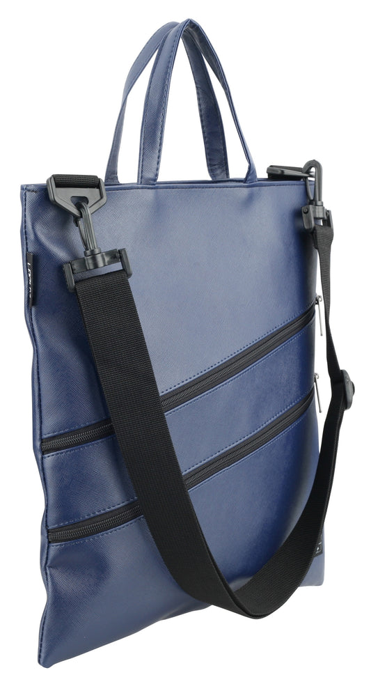 Navy Blue Faux Leather Diagonal Zipper Totes Handbags