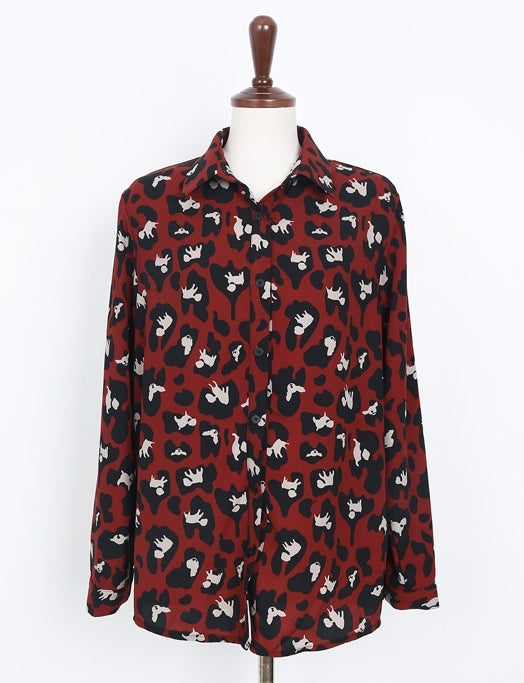 Burgundy Red Leopard Print Button-Down Shirts Blouses