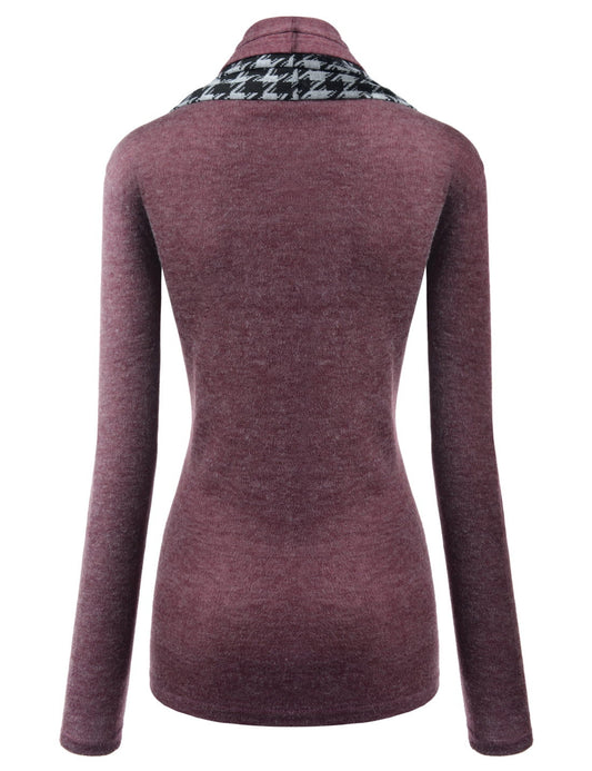 Burgundy Red Houndstooth Shawl Collar Knitted Open Cardigans