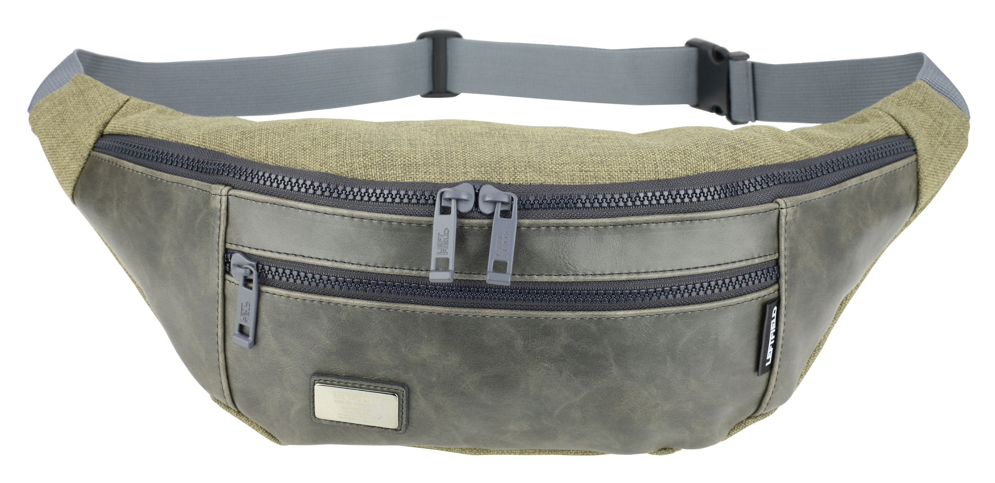 Green Faux Leather Canvas Hybrid Fanny Packs