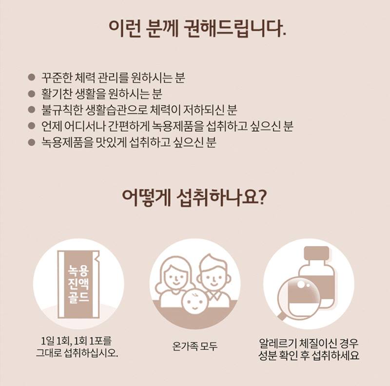 I recommend this product to those who want to stay healthy, those who want to live a lively life, those who want to lose stamina due to irregular living habits, and those who want to eat products easily anytime, anywhere.
