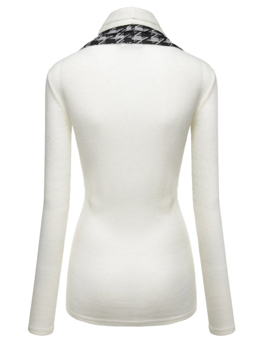 White Houndstooth Shawl Collar Knitted Open Cardigans