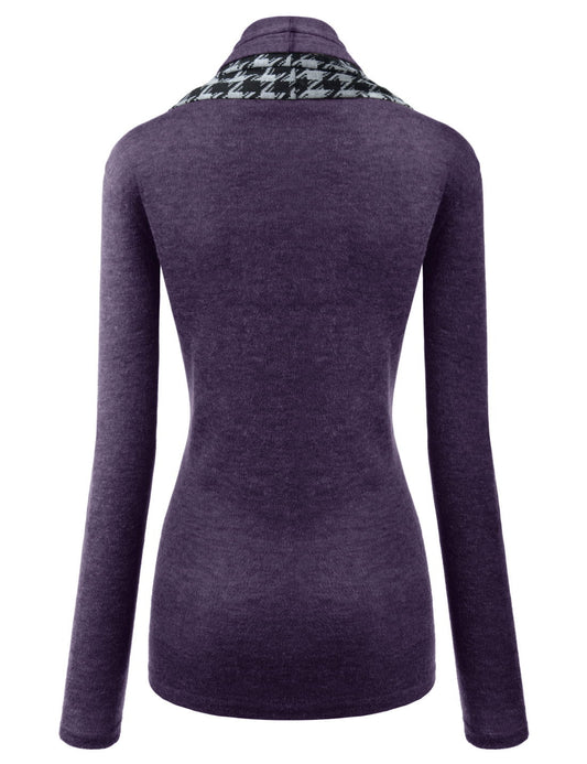 Purple Houndstooth Shawl Collar Knitted Open Cardigans