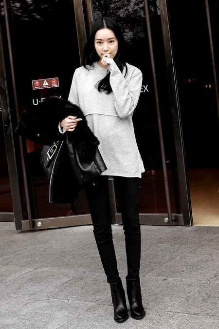 Gray Basic Cozy Vintage Long Sleeved Tees