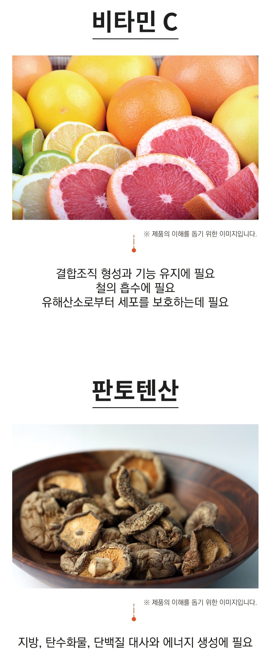 vitamin C for antioxidant, pantothenic acid for energy generation, vitamin D for bone health, vitamin B1 for energy metabolism. Health supplements.
