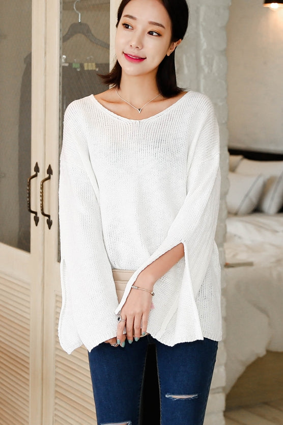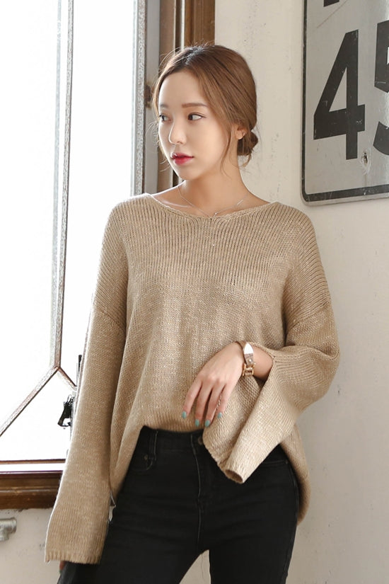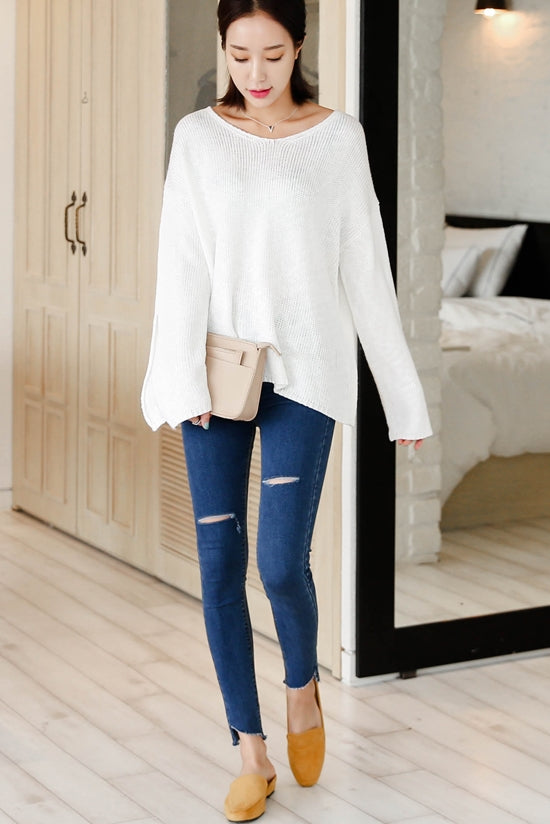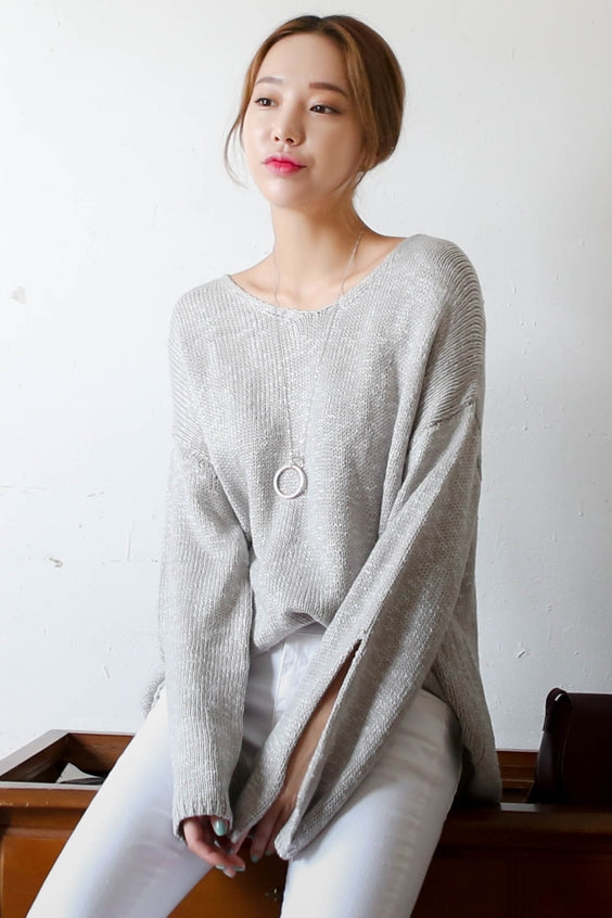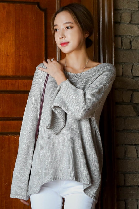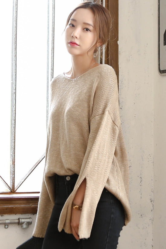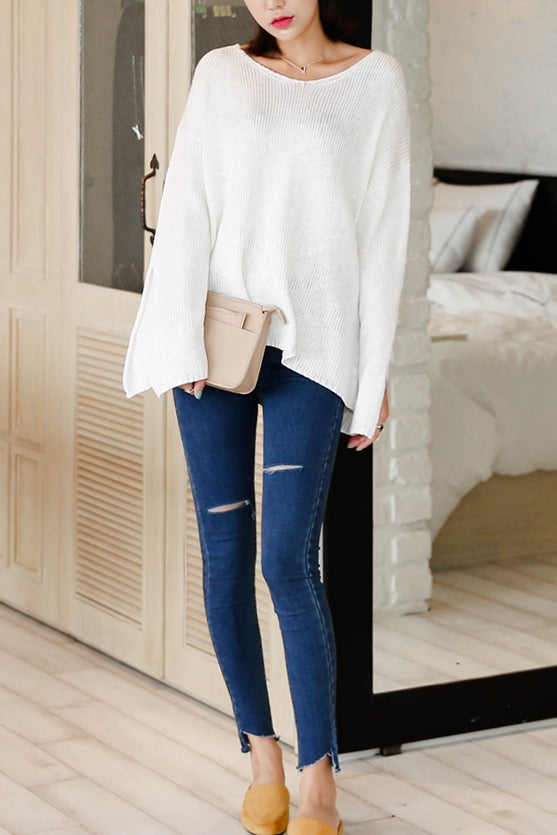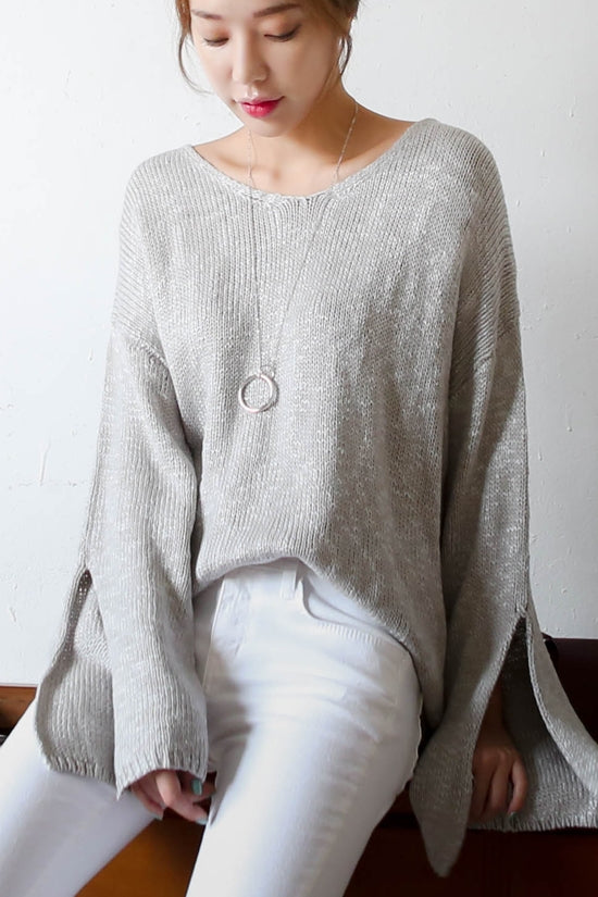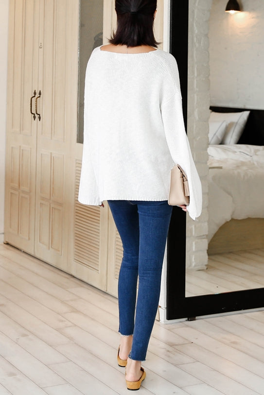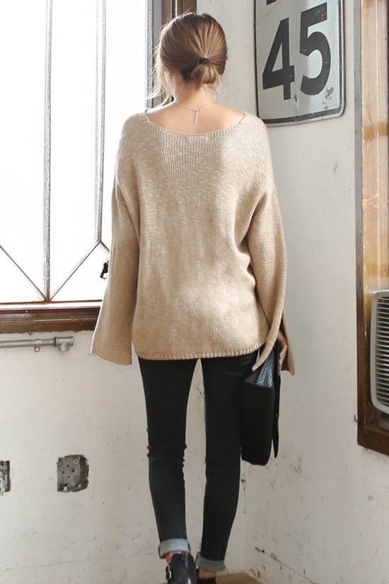 -Loose Fit Scoop Neck Knitted Sweaters for Women-