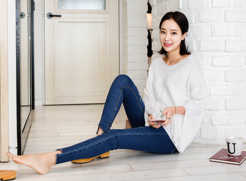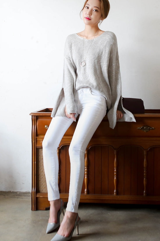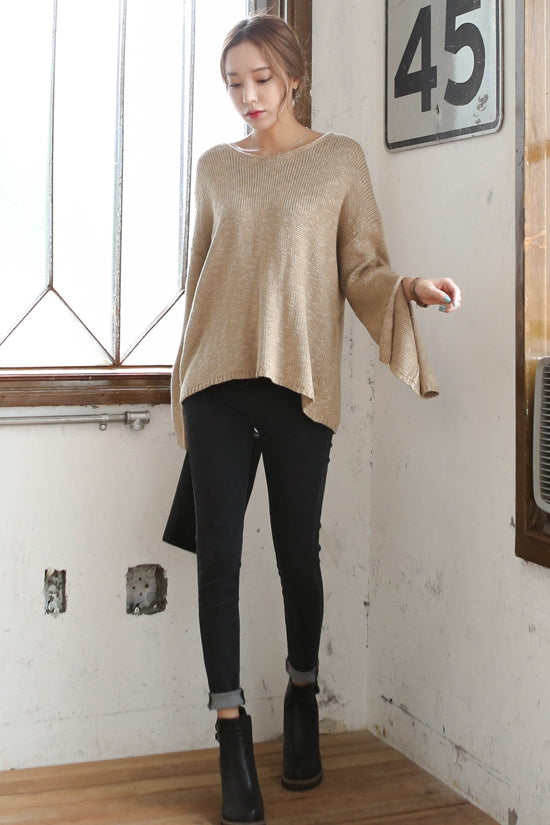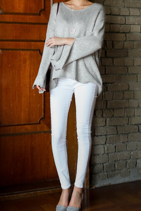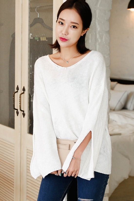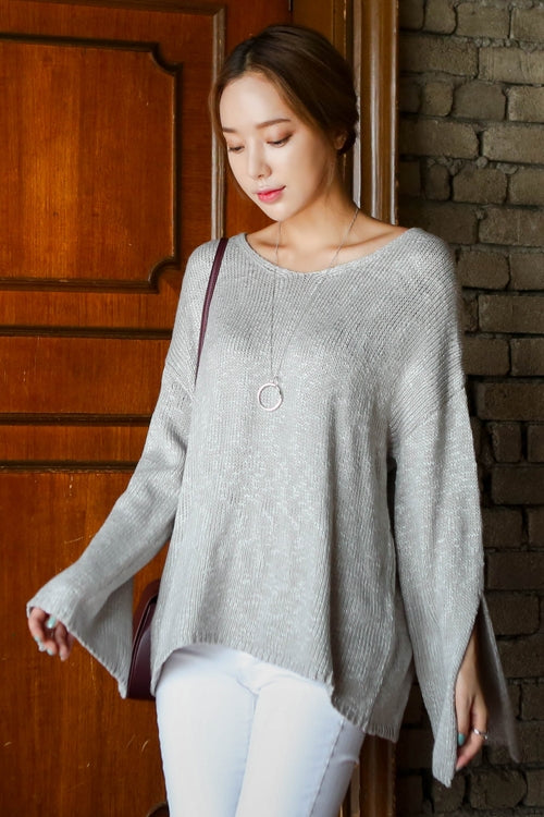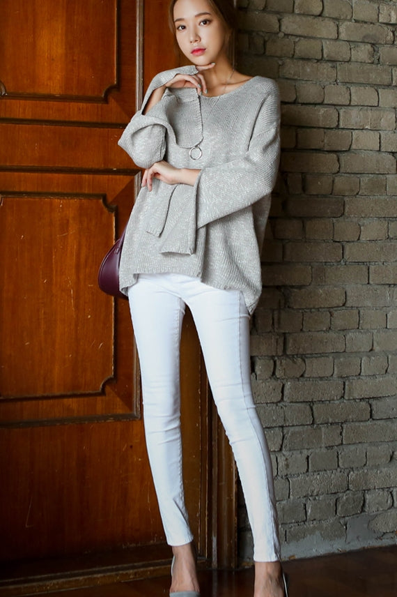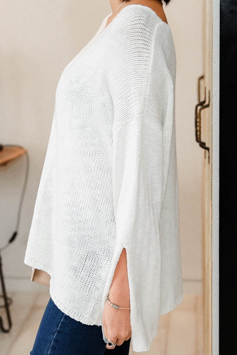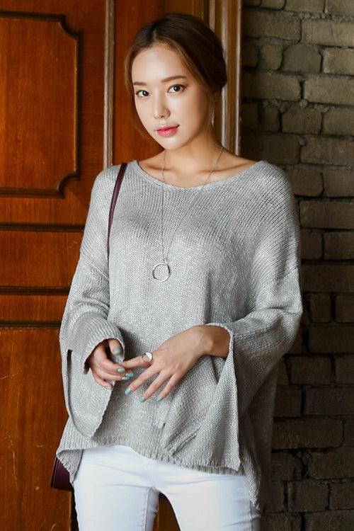 -Loose Fit Scoop Neck Knitted Sweaters for Women-