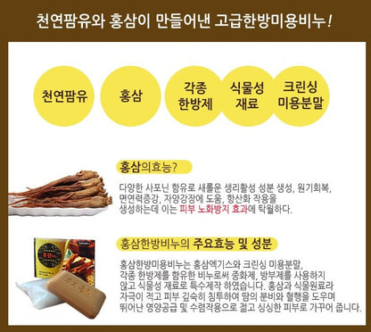 Korean Red Ginseng Beauty Soap is made by ancient Korean palace secret formula.