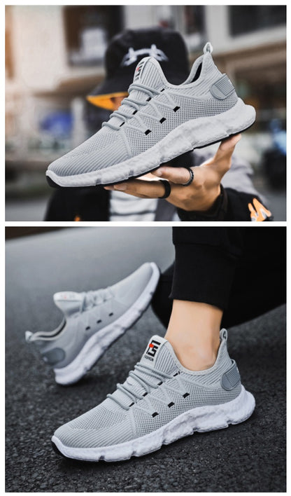 Gray Knit Athletic Sneakers Mens Shoes Casual Running Drawstring