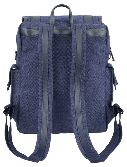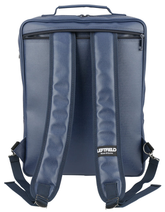 Navy Faux Leather Laptop Backpacks