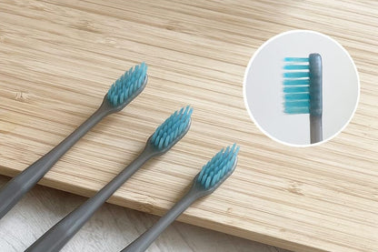 It is a simple and portable toothbrush with UV sterilization treatment by coating the bristles with natural toothpaste.