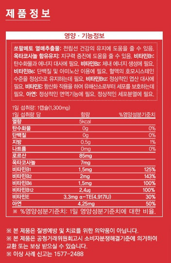 This product has a total of 8 ingredients, including octacosanol to help increase endurance, 4 types of vitamin B to help generate vitality and energy, zinc and antioxidant vitamin E necessary for normal immune function.